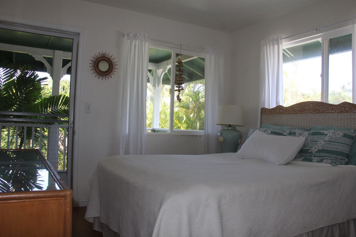 Tropically furnished. Bamboo floors throughout. Large covered lanai with palm fringed ocean view. Bright and airy with lots of windows to catch the trade winds. Swimming, paddling, bikeways, hiking. An active, healthy backdrop for your life! Spacious one bedroom w/ dining room/office. Wi-Fi ready, washer/dryer, full bath/tub/shower, ceiling fans in all rooms. Includes utilities, 1000 sq. ft. Move in ready. Off street parking for your car.