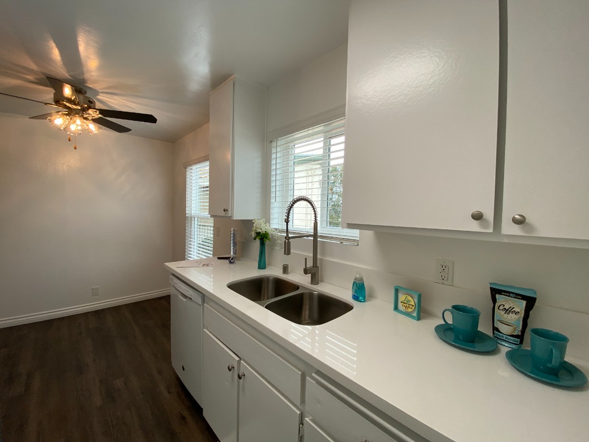 This Newly Remodeled 1-BD Upstairs Corner Apt. Home is located minutes from the beach in Oceanside conveniently located off of the 78 and El Camino Real. We are a SMOKE FREE community and offer a reserved SINGLE CAR GARAGE for parking with each home! This GATED community is nestled on top of the scenic hilltop of Paseo de Laura off of Vista Way just minutes from the 5 Freeway. This Newly remodeled Apt. home includes a Refrigerator, above-range Microwave, GAS Stove, Dishwasher, Garbage Disposal, Quartz Counter Tops, faux wood Blinds and large mirrored closet doors. This unique and spacious one bedroom home has fresh designer paint, luxury vinyl plank flooring in the Kitchen & Bathroom and New plush carpet in the Living Room & Bedroom. At this price this unit will go fast! *Pictures are of the actual unit.
