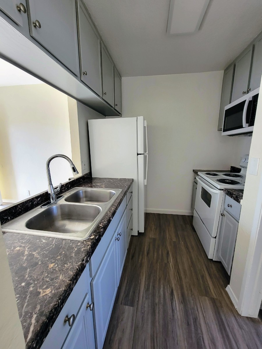 This 1 bedroom 1 bath upstairs apartment is centrally located near the 15 freeway! You are minutes away from SDSU, Mission Valley and Downtown. Within walking distance to major public transportation, bike routes and a small shopping center including a Starbucks and a Post Office on the next block. This cozy upstairs one bed one bath unit comes with an electric range, microwave, refrigerator, air conditioning unit, vinyl plank flooring, and walk-in closet. Unit offers laundry inside the gated complex. One assigned parking space. Manager lives on-site.