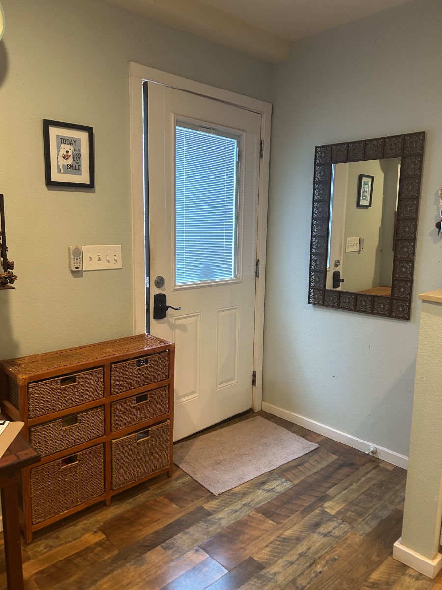 Shade, seclusion, privacy and Mountain View’s abound here! Perfect for 1 or 2 people. Features include custom made Shoji screens, double stainless steel sink, large (30’ x 10’) covered deck complete with privacy screens when needed, washer/dryer hookups. Granite island offers more counter and cabinet space. Off street parking for 1 car. Air conditioning in bedroom. Deck furniture is included. This apartment has much to offer.