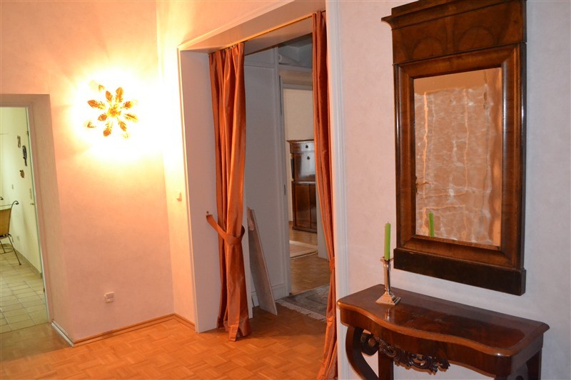 The apartment is fully furnished and has lots of tasteful furniture and paintings. It has a parquet flooring and crown moldings as well as high ceilings. A very typical