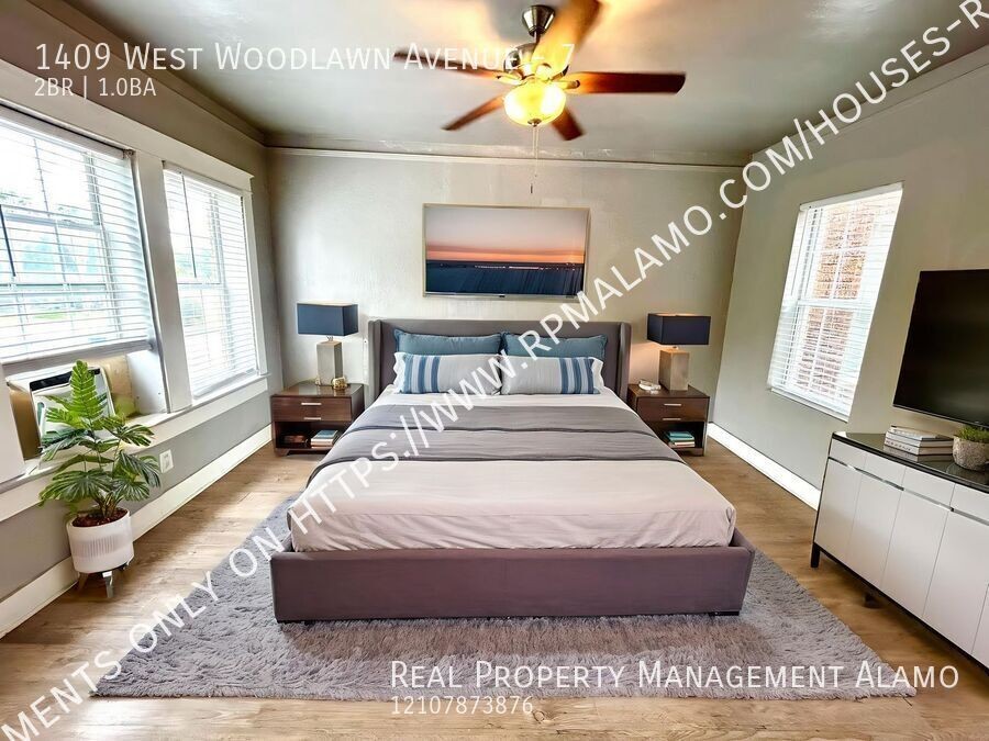 Discover 1409 West Woodlawn Avenue - Unit 7, nestled in the vibrant heart of San Antonio, TX. This charming two-bedroom, one-bathroom upstairs unit offers the great blend of comfort and convenience, ideal for anyone looking to be close to the dynamic downtown area and St. Mary's University. As you enter the unit, you'll be welcomed by a cozy and inviting atmosphere. The living space is equipped with (1) efficient A/C window unit. The kitchen is complete with a stove/oven and refrigerator, ready for you to whip up your favorite meals. Ceiling fans in the main living areas enhance the comfort of the home, circulating air efficiently throughout the space. Located just moments from downtown San Antonio, this unit puts you in the heart of it all. Enjoy easy access to a wide array of restaurants, shops, entertainment options, and cultural attractions. Don't miss out on this opportunity to make it your new rental. Schedule a viewing today! For more information, e-mail us at Lease@rpmalamo.com Thank you!