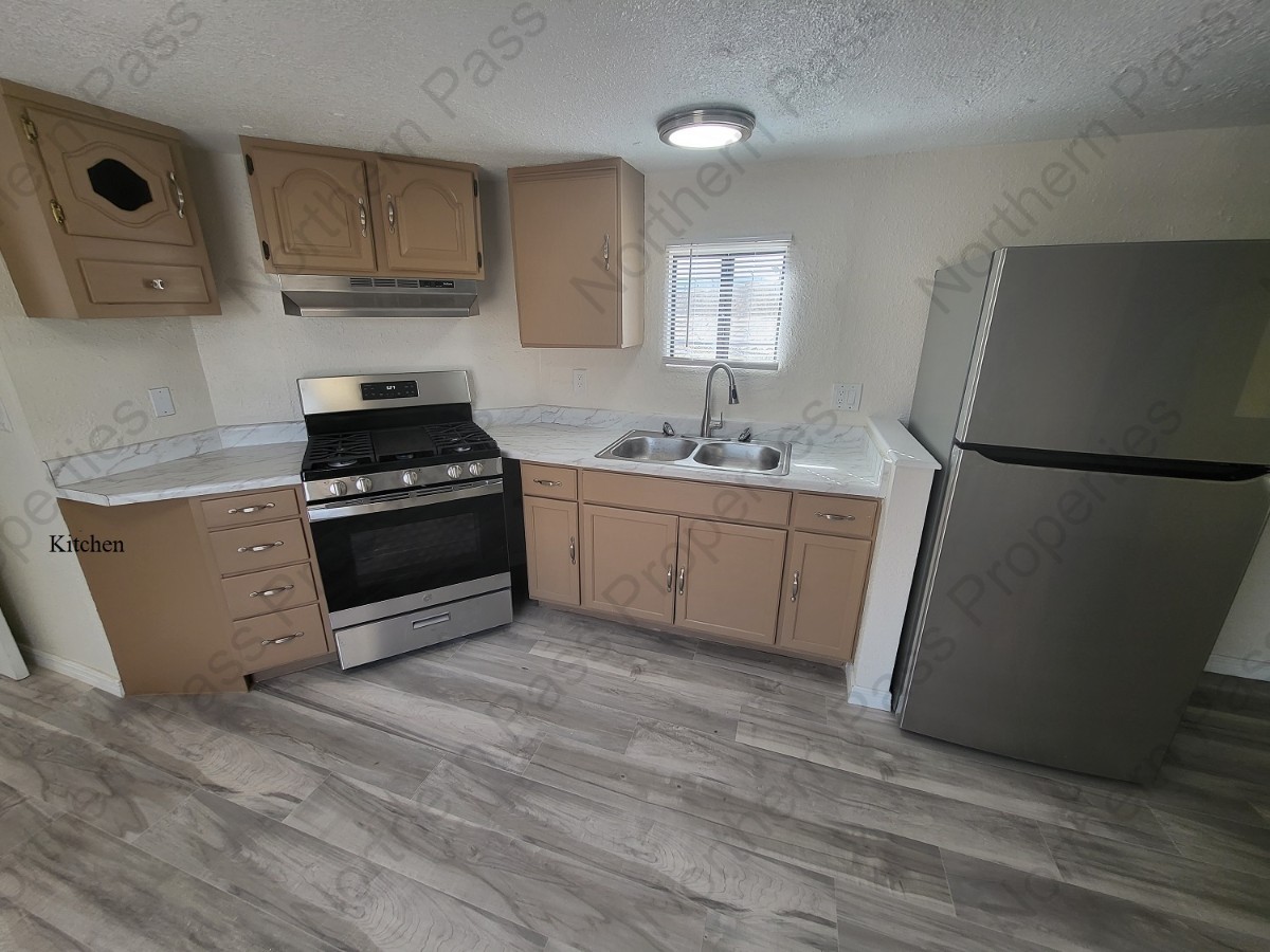 Close to Hawkins Blvd, this 2-bedroom manufactured home features an open living room and dining area with stainless steel appliances in the eat-in kitchen. Both bedrooms offer ample natural light and share a 3/4 bath. Enjoy laundry hookups and laminate flooring throughout.