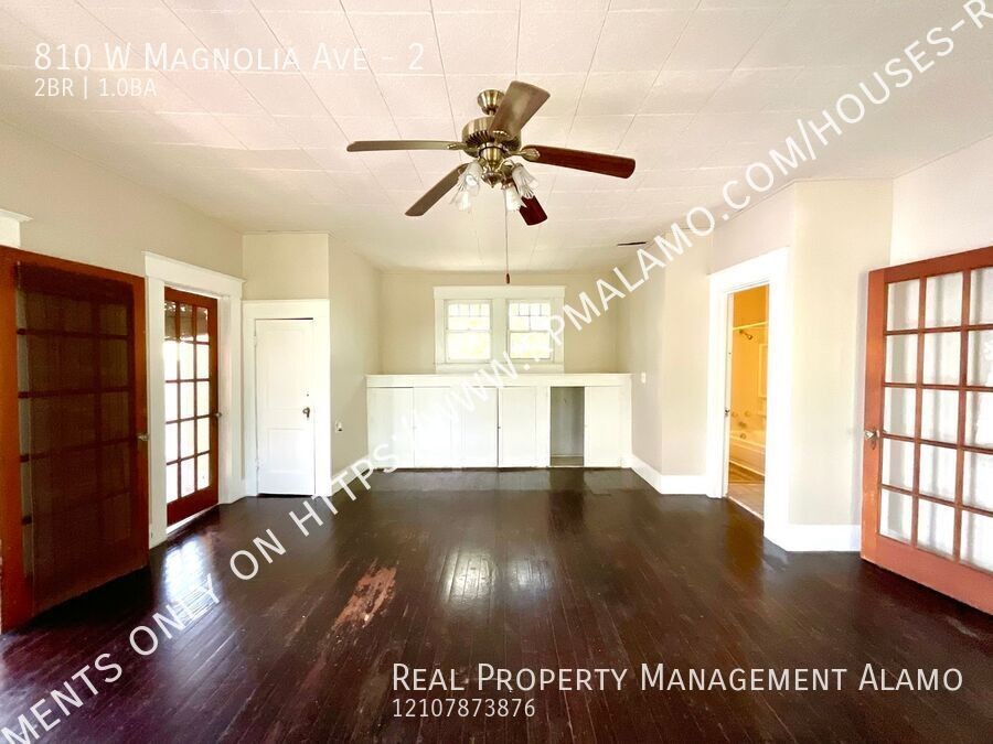 Discover this UPSTAIRS 2-BEDROOM, 1-BATHROOM APARTMENT full of CHARM, CHARACTER, AND CONVENIENCE in the heart of San Antonio. Inside, you’ll find timeless details such as HARDWOOD FLOORING THROUGHOUT and VINTAGE-STYLE KITCHEN CABINETS that bring warmth and personality to your living space. STACKED WASHER & DRYER INCLUDED for your convenience. Perfectly situated in a VIBRANT NEIGHBORHOOD, this home places you just moments from POPULAR RESTAURANTS, LOCAL EVENTS, SAN ANTONIO COLLEGE, and the serene beauty of SAN PEDRO PARK. With countless CITY ATTRACTIONS only a short drive away, you’ll enjoy the best of San Antonio right at your doorstep. In addition to its PRIME LOCATION, the property offers WELCOMING OUTDOOR SPACES, including a SPACIOUS FRONT YARD ideal for relaxing or unwinding after a busy day. Don’t miss the chance to call this CHARACTER-FILLED APARTMENT your new home—810 W. MAGNOLIA #2 is ready to offer COMFORT, CONVENIENCE, AND CLASSIC CHARM, all in one great location. For more information, contact us at Lease@rpmalamo.com
