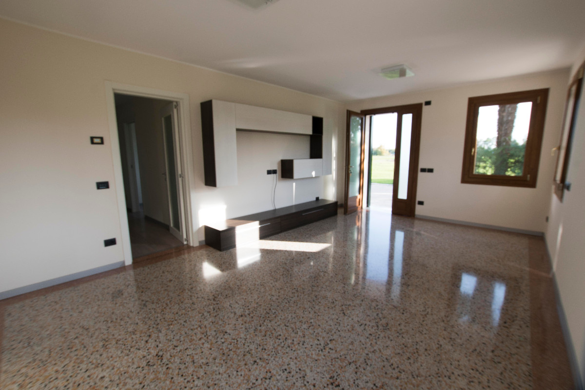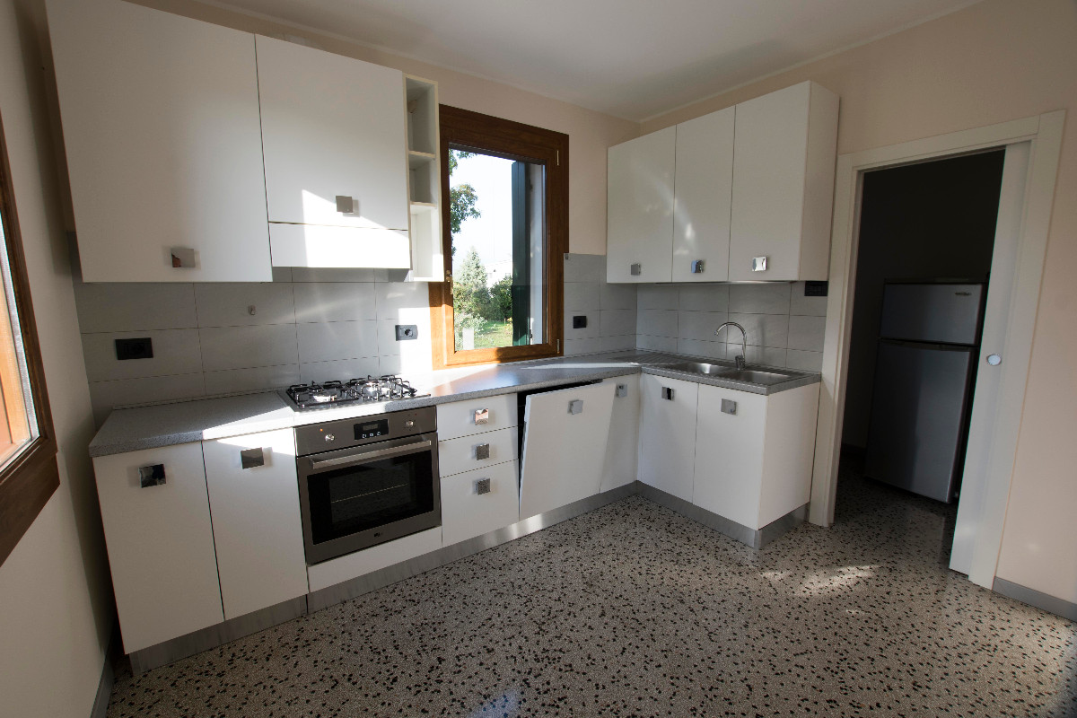 Nice ground floor apt, just renewed! It has: furnished kitchen, livingroom, 2 bedrooms, 2 bathrooms, parking space. It's located in a quiet area with a lot of green space around.