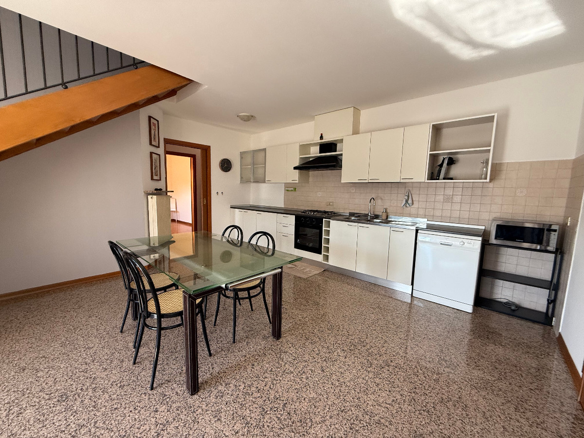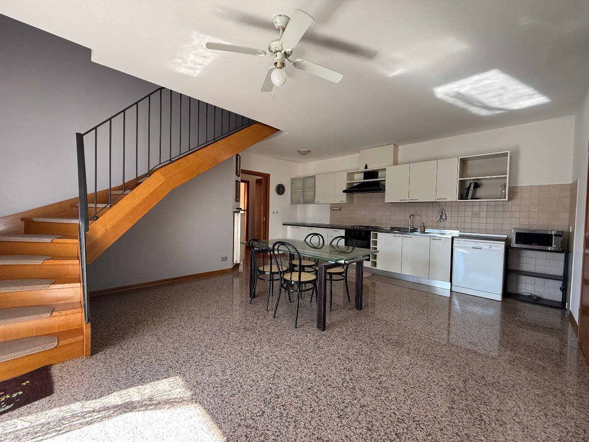 two levels, first floor: kitchen - living room, one bathroom, one bathroom, balcony;