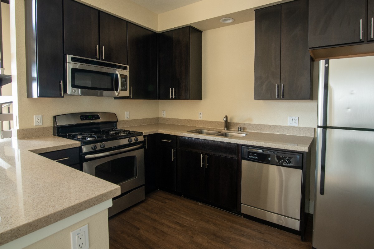 Units have stainless appliances: gas stove, dishwasher, microwave, refrigerator, garbage disposal and in unit stackable washer and dryer.