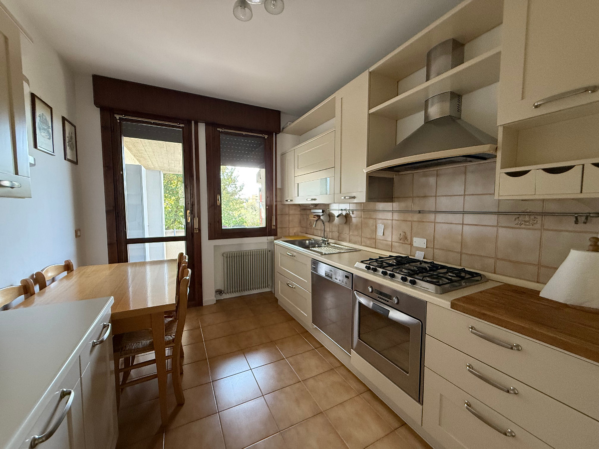 Entrance, spacious and bright living room with balcony, furnished kitchen with another smaller balcony, three bedrooms, two bathrooms, two cars garage.