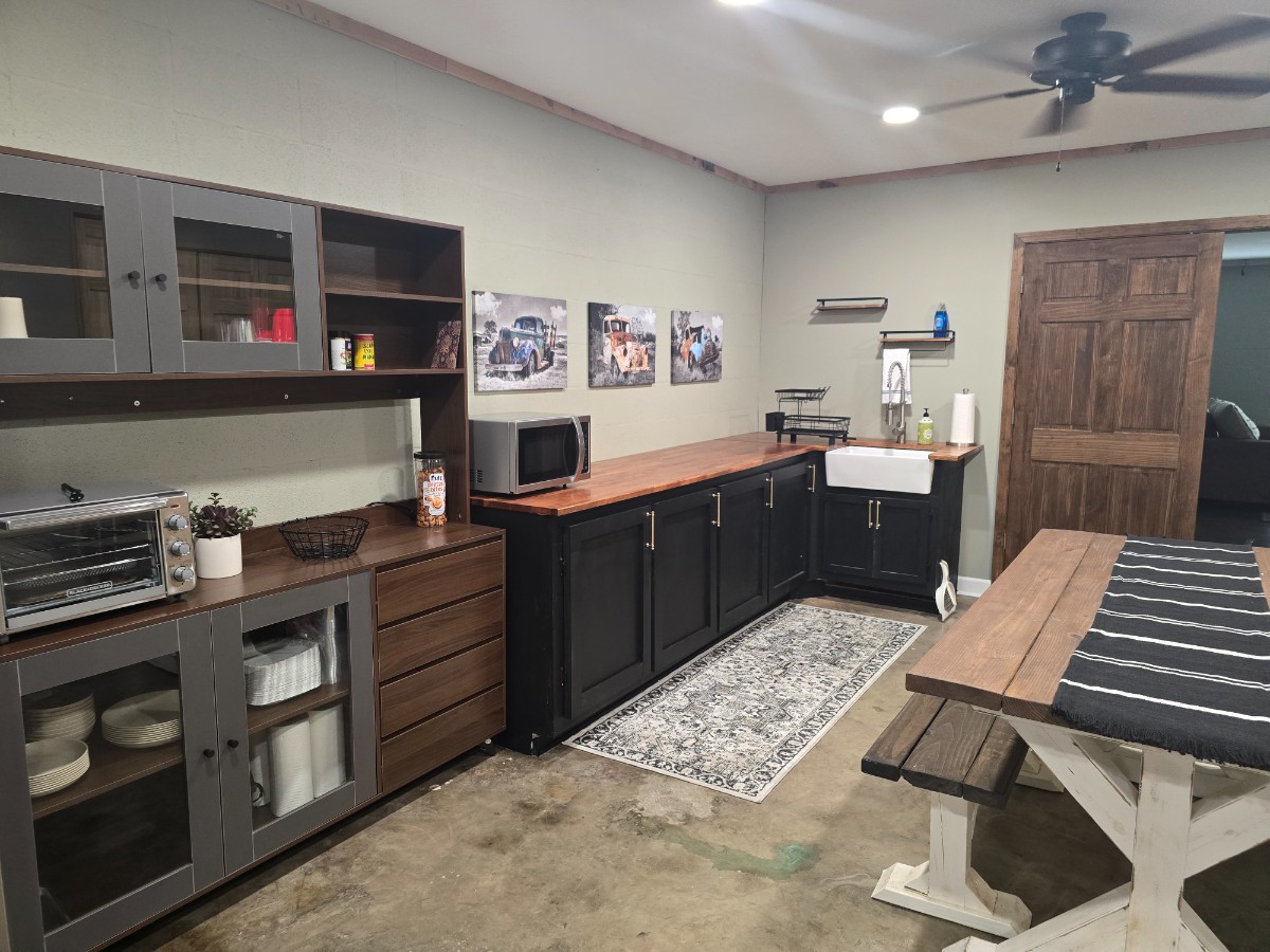 Enjoy this brand new garage condo, minutes from the sandy beaches. 2 large screen tvs, coffee bar, dart board, bar and office. You'll feel right at home during your stay. Enjoy 3 restaurants within walking distance or stay in and grill out.