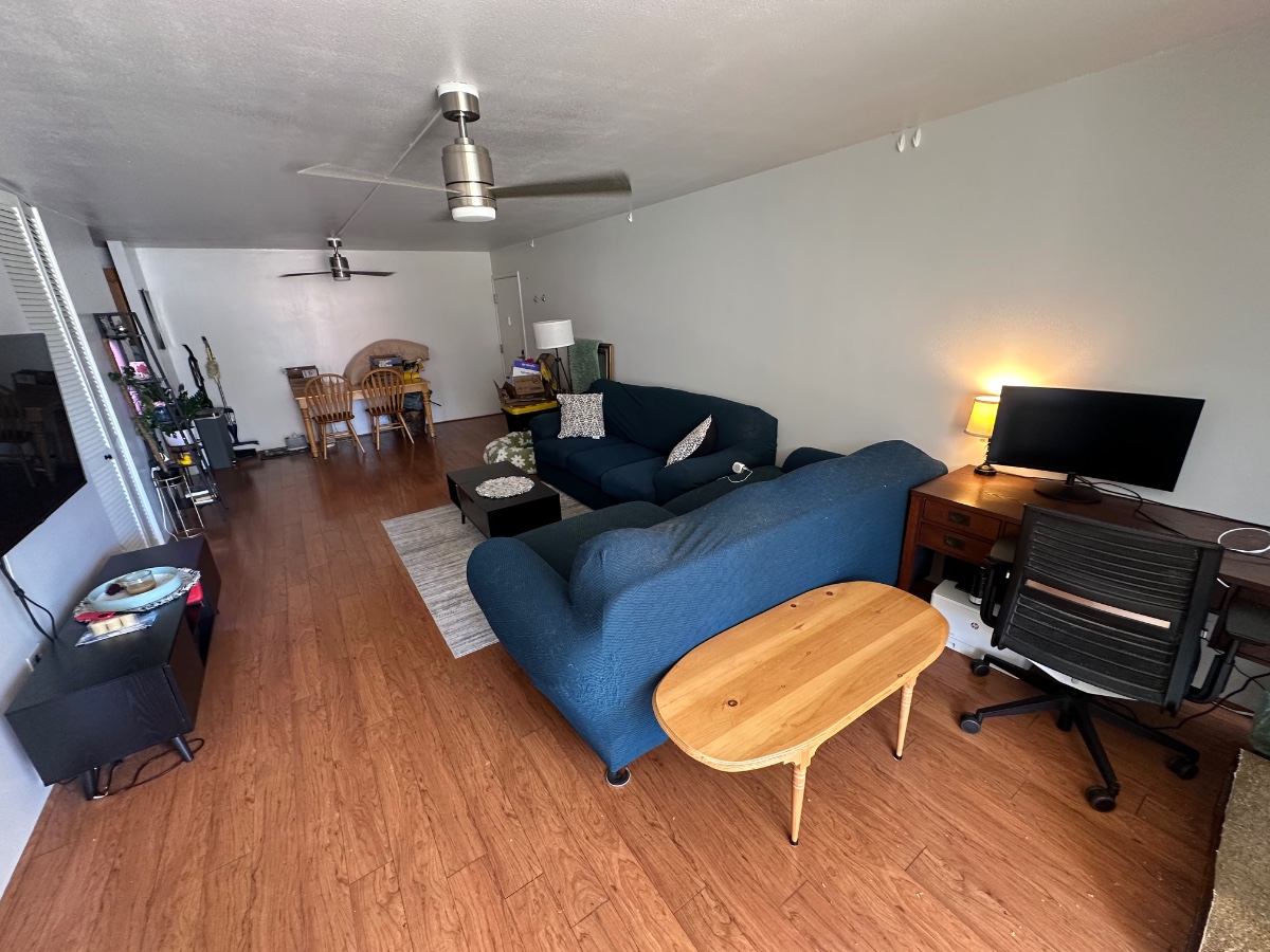 Located in a quiet area walking distance to Waikiki Beach and Ala Moana Shopping Center. Water utility included. Photos shown with previous tenents. Will need mattress. TV, couch, bed frame, desk, dining table with chairs are included. One pet allowed.