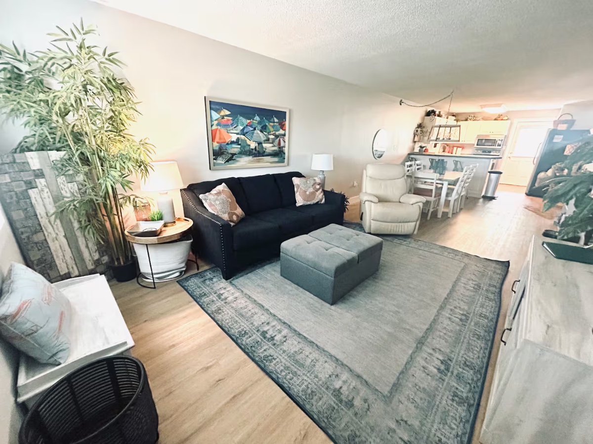 This 1-bedroom, 1-bath boasts a spacious living and kitchen area, king bed, queen couch pull-out, and ottoman/twin convertor. 120 steps to our gorgeous Okaloosa Island beach access and only a few minutes to FWB, Destin, and Navarre. It's about a 20-minute drive to Hurlburt and Eglin alike.