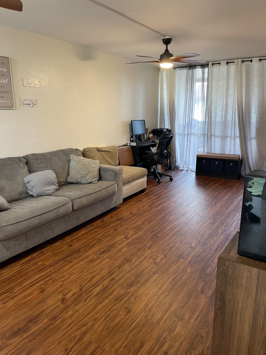AVAILABLE March 15, 2026. Pet friendly, remodeled, 2nd floor walk-up to a 2 bedroom, 1 bathroom, spacious kitchen, gas range, w/ new vinyl flooring on concrete floors, concrete walls and ceiling. Rental includes 2 reserved parking stalls and a community laundry in the building. Close to freeway access and Pearl Harbor.