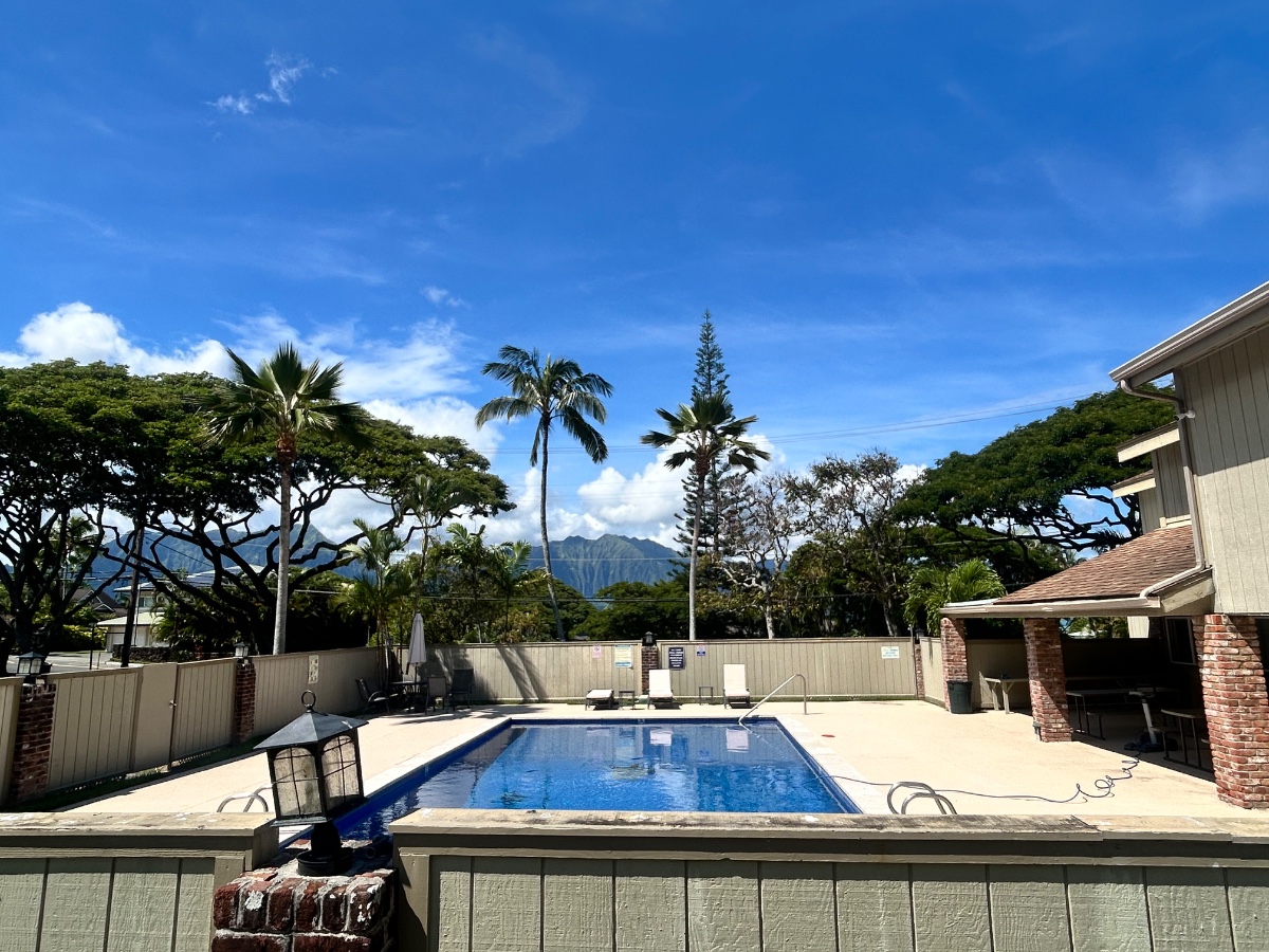 Single level 2 bedroom, 1.5 bath with 2 assigned parking stalls in front, and bonus guest parking stall just steps away! This pet friendly unit is a great location with a private courtyard and a wonderful rear lanai with a lovely green grass view. Located close to the H-3 highway, Aikahi shopping center, Marine Corp Base Hawaii and beach. It is fee simple, $884 per month HOA, 100% hurricane insured, qualified for VA financing.