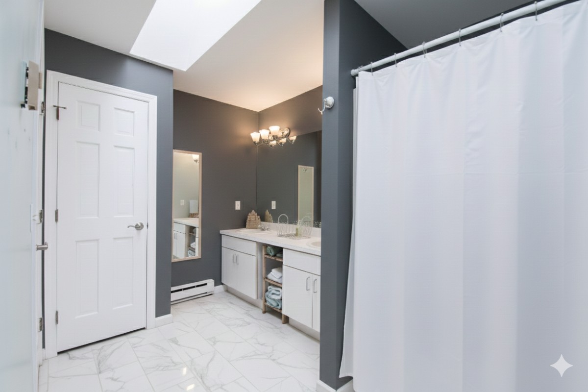 The home features a spacious full bathroom with dual sinks, a tub and shower, plus a half bath for added convenience. The laundry area is ideally located on the second floor, just outside the bedrooms and adjacent to the full bath. A large storage area off the bathroom provides excellent storage space.
