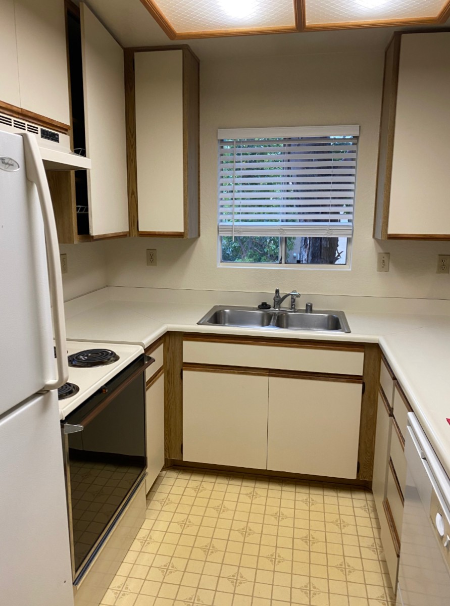 The residence features central heating and air conditioning, a cozy fireplace, and all appliances included, highlighted by a full-size washer and dryer conveniently located inside the unit. Parking is effortless with one assigned carport space plus one additional assigned parking space. Water and garbage service are included in the rent, providing added value and convenience.