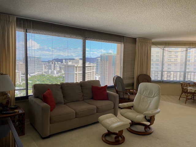 Come see this fully furnished 2 bedroom/2 bath unit located in the Discovery Bay Condominium. High floor unit with Diamond Head and Ocean views. Easy access to Waikiki, as well as to Ala Moana Shopping Center and the beach.