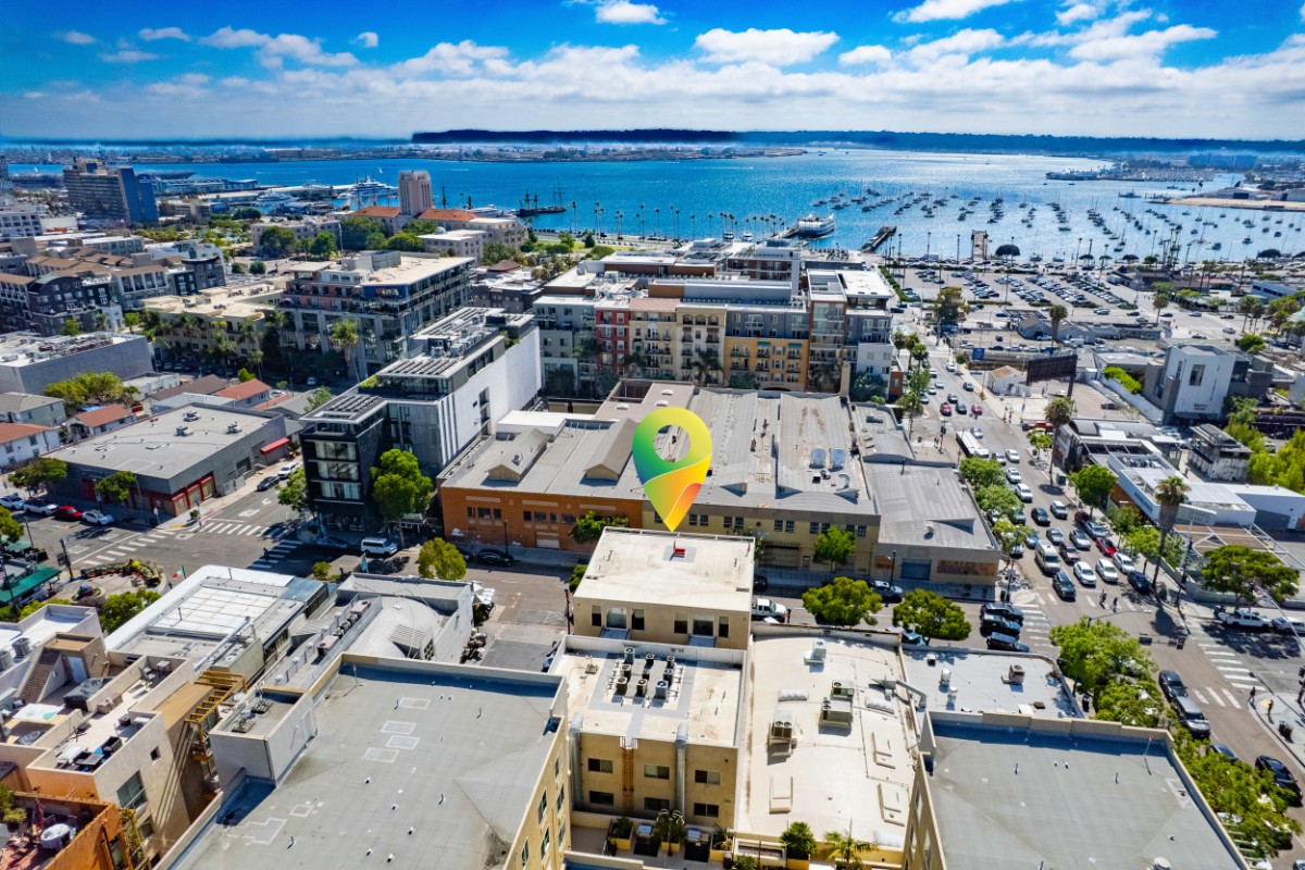 FINESTRA LOFTS – Unit #201 is located iconic India Street in the heart of Little Italy in Downtown San Diego. This large two-level condo offers 1,448 SF with 2 bedrooms and 2 bathrooms, a modern kitchen, 3 balconies and abundant storage throughout. Amenities include hardwood floors throughout, granite countertops, stainless steel appliances, abundant custom built-ins, and access to a shared terrace. Google Webpass high-speed internet is installed (up to 10x faster than Cox). Assigned underground parking is accessed via auto-lift ($175/month), with EV charging available. Small pets are accepted upon approval with pet deposit and pet rent. Located in the vibrant Little Italy neighborhood of Downtown San Diego, known for its distinct character, India Street is lined with charming shops, restaurants, cafés, and art galleries. Enjoy convenient access to the freeway, airport, Petco Park, the San Diego Trolley, the Gaslamp Quarter, the marina, and the ferry to Coronado. Owner pays water. Tenant pays electricity (SDG&E), internet (Google Webpass $35/month), and cable (Cox). ONE MONTH FREE RENT with a one-year lease. AVAILABLE NOW.