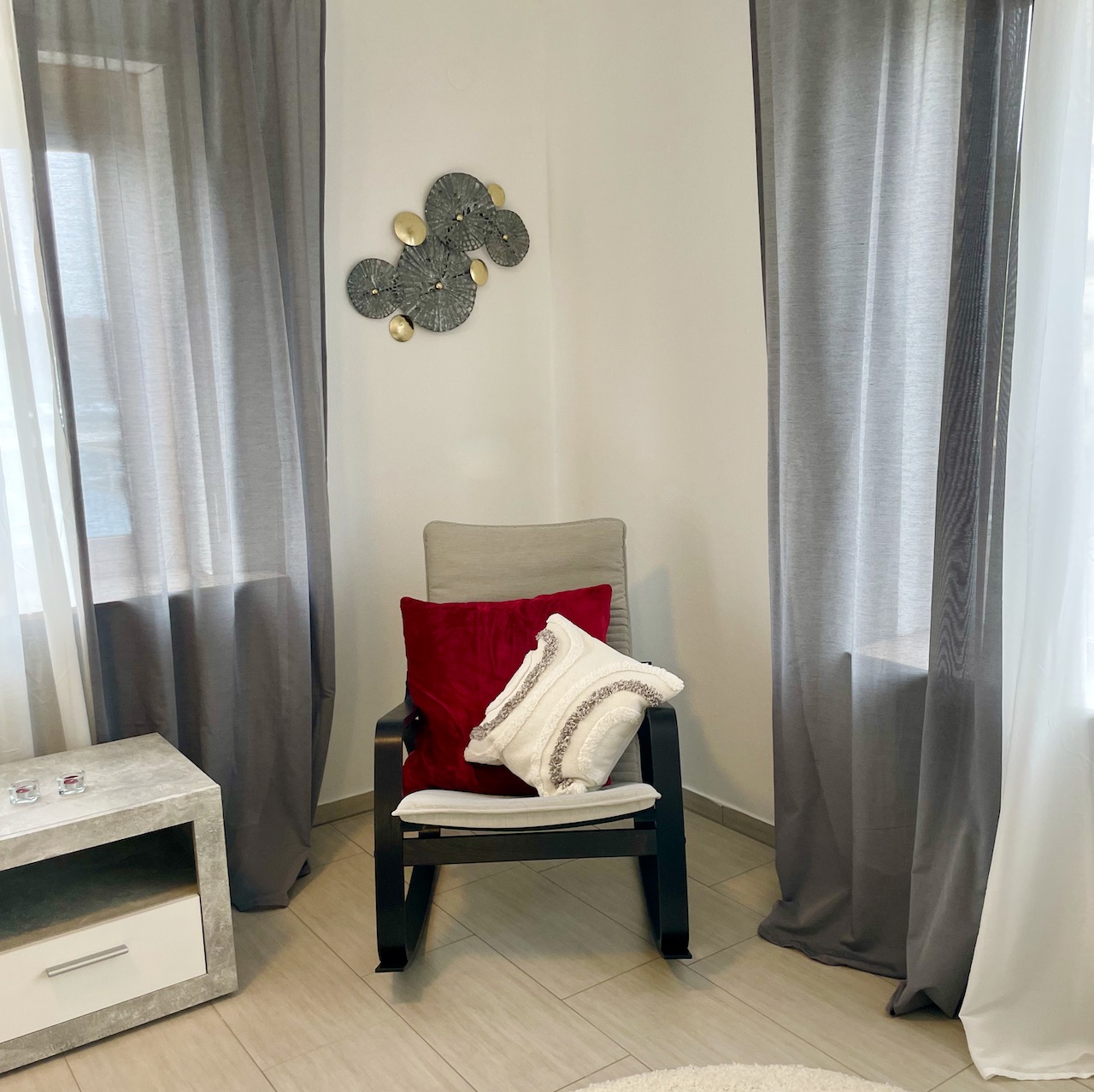 - Curtains available