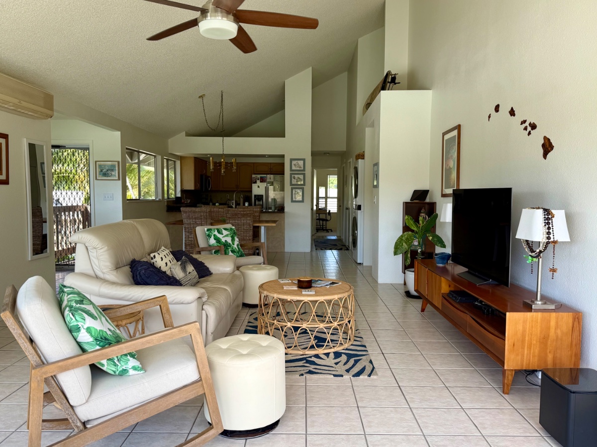 Welcome to your premium home away from home in an exclusive gated community. This rare top-floor (second-floor) end unit offers unmatched privacy and signature vaulted ceilings, providing an expansive, airy atmosphere tailored for the high-end working professional seeking peace for business travel, or a turnkey vacation in Honolulu.