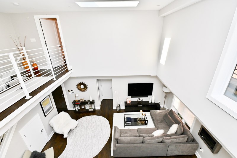 Main floor features 20" ceiling, large windows and a skylight that
