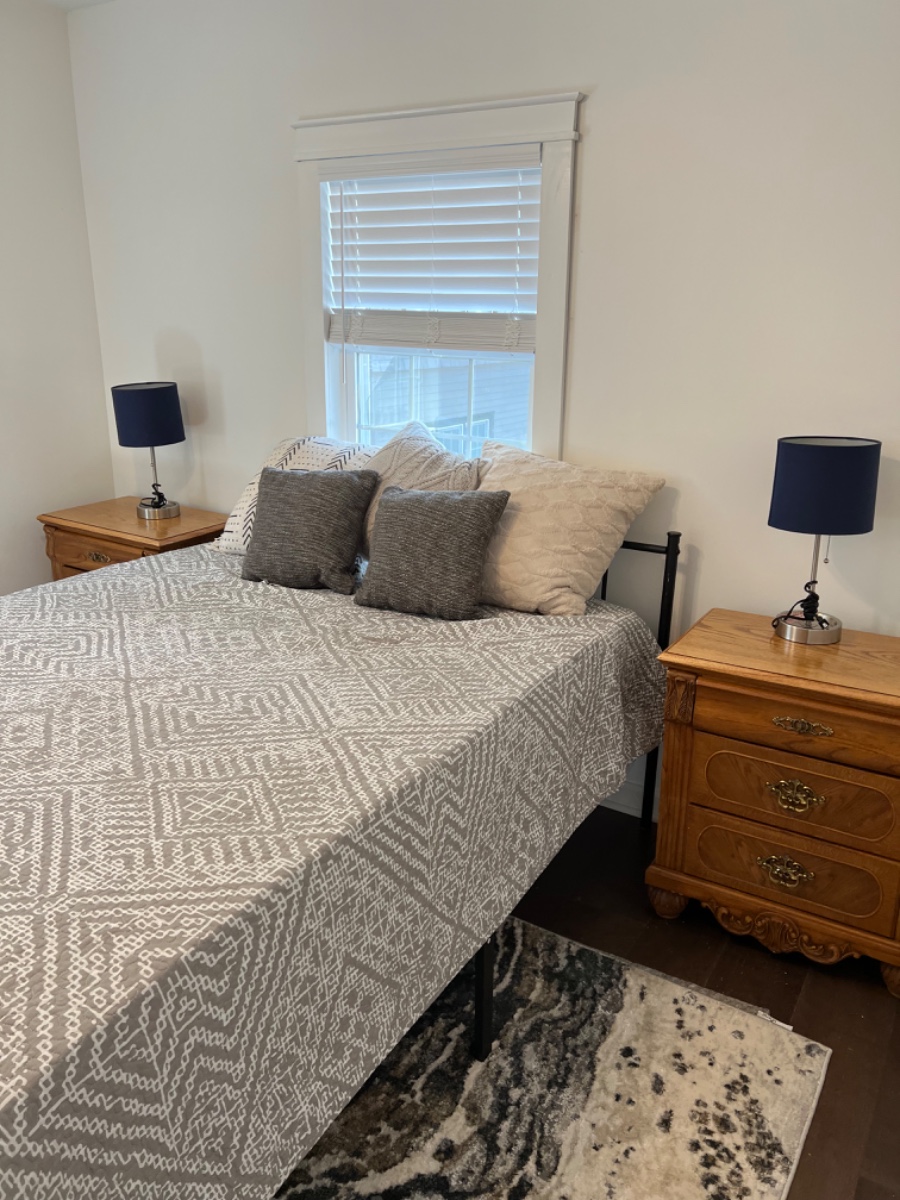 Urban living with a hometown feeling-recently renovated “flower shop” into a modern duplex. Light and airy, clean second floor apartment with large deck. 2 bedrooms with closets, large bathroom with double sinks, shower. Stackable washer/dryer in the unit.