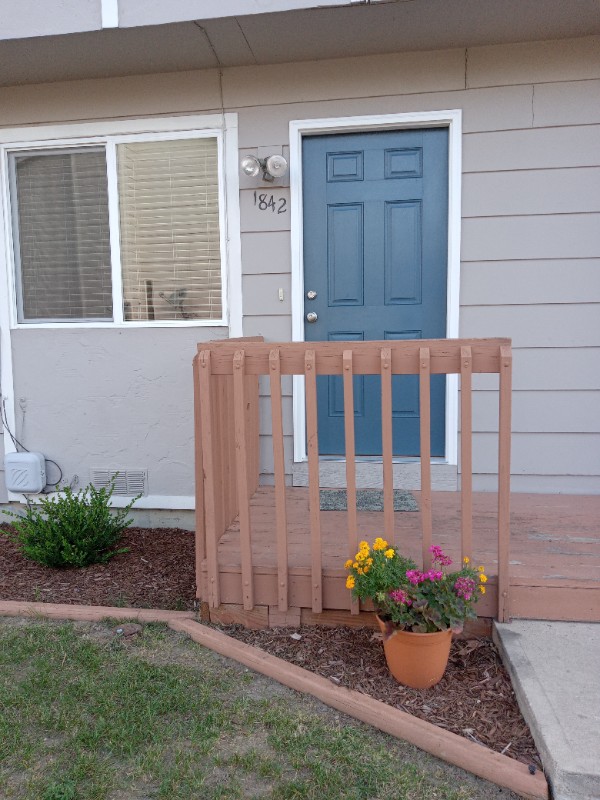 Very nice 2 bedrooms,1 1/2 bathroom end unit , very clean townhome, all windows, and doors replaced, updated bathroom, newer lighting, ceiling fans in bedrooms, kitchen updated, and living room with fireplace, laminate flooring throughout, bathroom and kitchen with tile floor. Appliances include Refrigerator, Electric stove, dishwasher, and it comes with washer and dryer located off the kitchen. Trash collection included in the rent. Easy access to Fort Carson and Peterson Air Force base, school and shopping ' one assigned parking space. Additional terms: Small dogs allowed( only dogs under 25 lbs., no more than 2 ) Recurring pet rent $35.00/ monthly per dog. No cats , No smoking of any kind of substances. 12-month lease. tenant pays utilities. electric, water and gas tenant must maintain renters insurance no evictions. no criminal records.