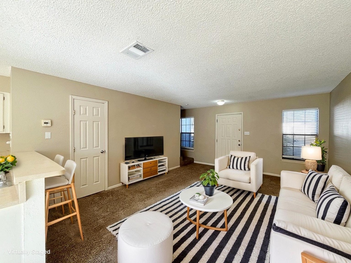 The outdoor space offers a private patio area, surrounded by a privacy fence. Located in a desirable area near shopping, this home is sure to meet your needs. With easy-to-maintain carpet and ceramic tile flooring, along with blinds and window coverings, this property provides both style and comfort.