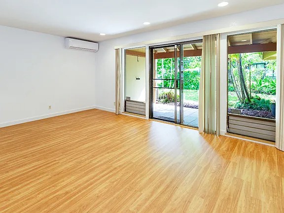 Beautiful upgraded Wailuna townhouse with 2 bedrooms, 1 1/2 baths and 2 parking spaces (1-car garage, 1-open stall). There is wood laminate flooring in the living room and bedrooms, ceramic tile in the kitchen and bathrooms. There is recessed lighting in the living room and split A/Cs in the main living area/kitchen and master bedroom. There are ceiling fans in the main living area and 2 bedrooms. The lanai is breezy and is ceramic tiled. Both kitchen and baths have granite counters.