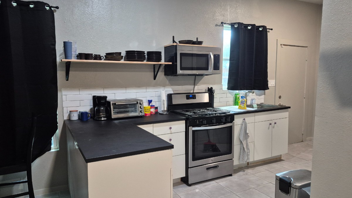 Front unit of a 115 year old duplex on half acre, within 3 miles of downtown San Antonio. Renovated, tucked away on a cul-de-sac against the creek, in sight of Tower of the Americas! Walk or bike to downtown on the paved trail, 10 feet from the side gate. With security cameras, shaded patio, stocked laundry, appliances including dual air fryer / toaster, wifi, smart TV, on site parking. Future development work scheduled on the huge property, but nothing that'll impact guests. Pets welcome with deposit / approval.