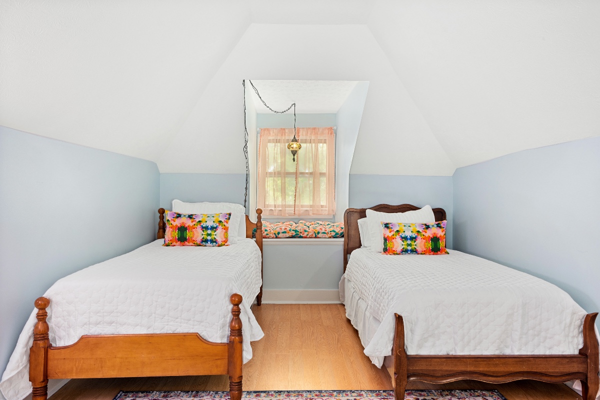 The unit includes a full, well-equipped kitchen, comfortable living space, high-speed WiFi, and smart TV. Bedrooms are furnished with quality bedding for restful nights, and the bathroom is stocked with fresh linens. Upstairs in the loft, you’ll find two twin beds, and the master bedroom is on the main level offering a queen sized bed. The spare bathroom is on the main floor off of the kitchen. Keyless entry ensures easy access and added security.