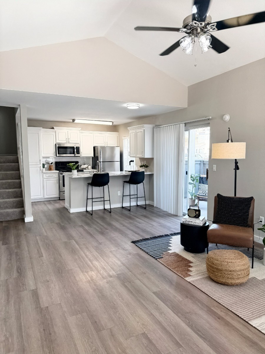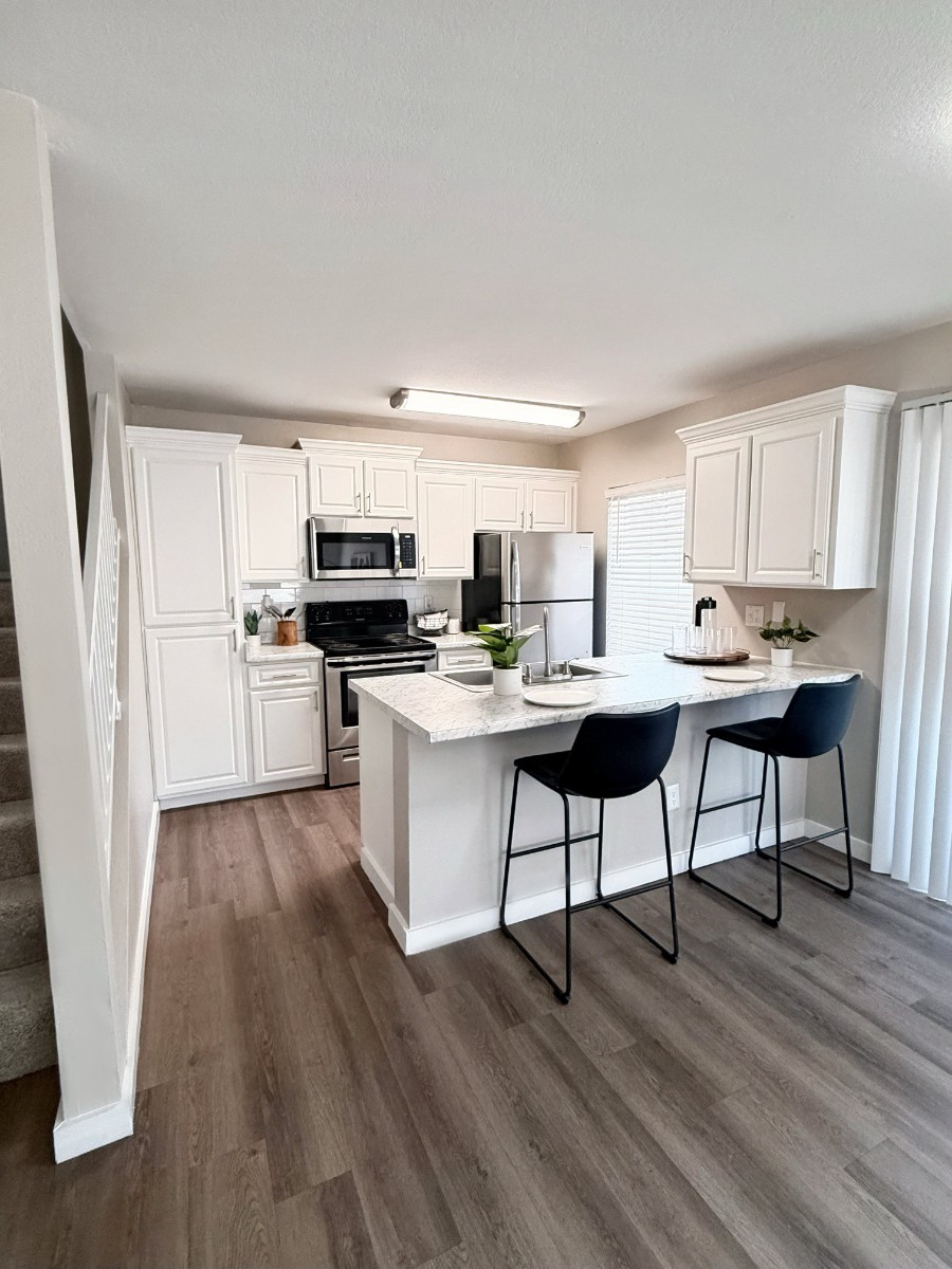 Step inside our thoughtfully designed 3-bedroom townhomes and unlock the door to contemporary living at its finest. Every detail has been carefully considered to provide you with the ultimate in comfort and style. From modern kitchens with stainless-steel appliances and ample counter space to the convenience of in-home washers and dryers, our interiors are tailored to elevate your daily living experience. Discover spacious walk-in closets, inviting private patios, innovative smart packages, and beautifully designed lighting throughout.