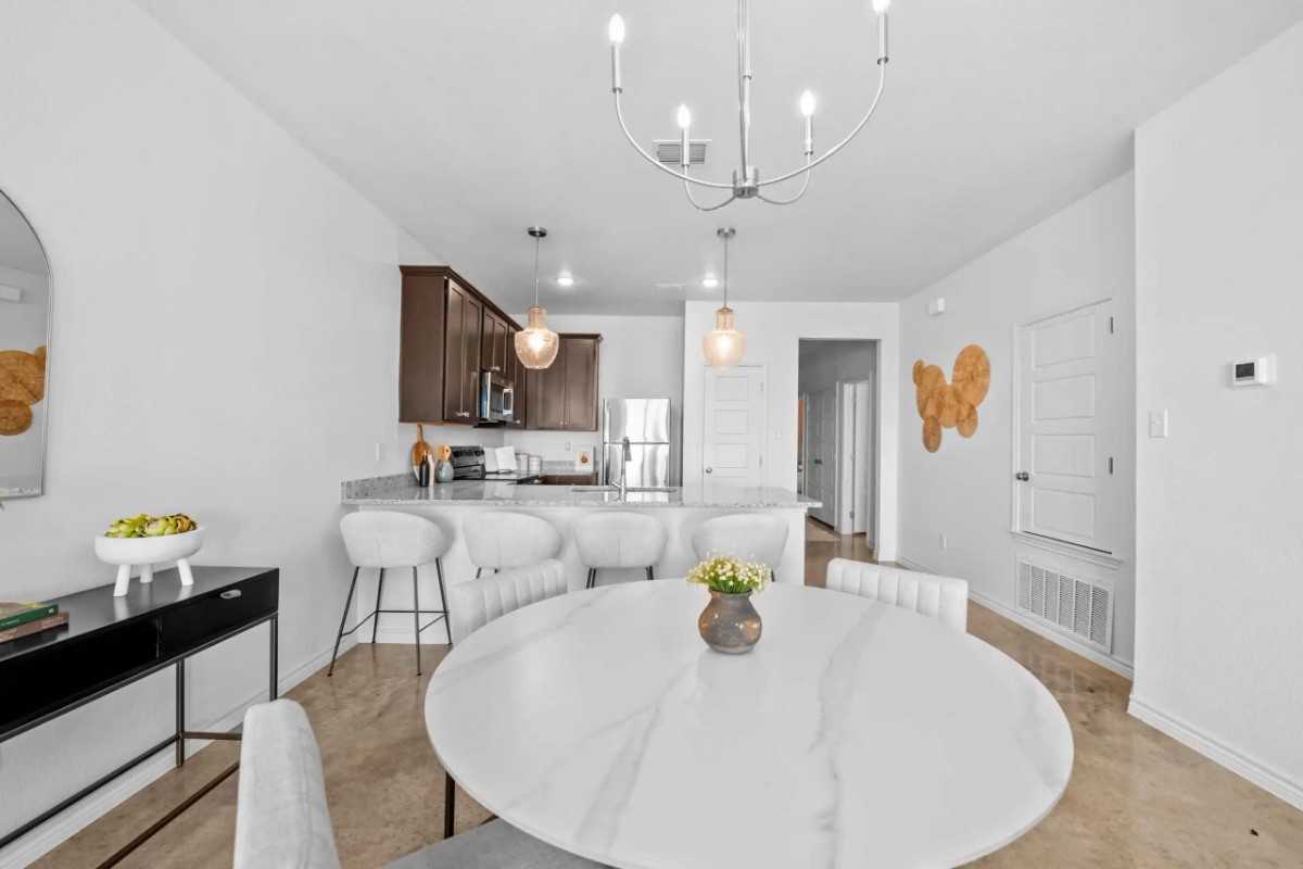 Open-concept living, dining, and kitchen area