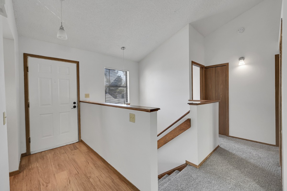 This spacious townhouse offers the perfect blend of function and comfort, featuring cozy carpet and warm hardwood floors throughout. The inviting living room with a fireplace creates the ideal space for relaxing evenings, while the recreation room provides additional space for entertainment or hobbies. The kitchen comes fully equipped with an electric stove, oven, refrigerator, dishwasher, and disposal, making meal prep a breeze. You'll also enjoy convenient touches like a dedicated laundry room with a washer and dryer, ceiling fans for added comfort, and central air conditioning and gas heat for year-round climate control. Outside you'll enjoy the fresh air on your private deck or relax on the front porch. This home also includes a welcoming foyer and a spacious primary bedroom, offering a perfect retreat at the end of the day.