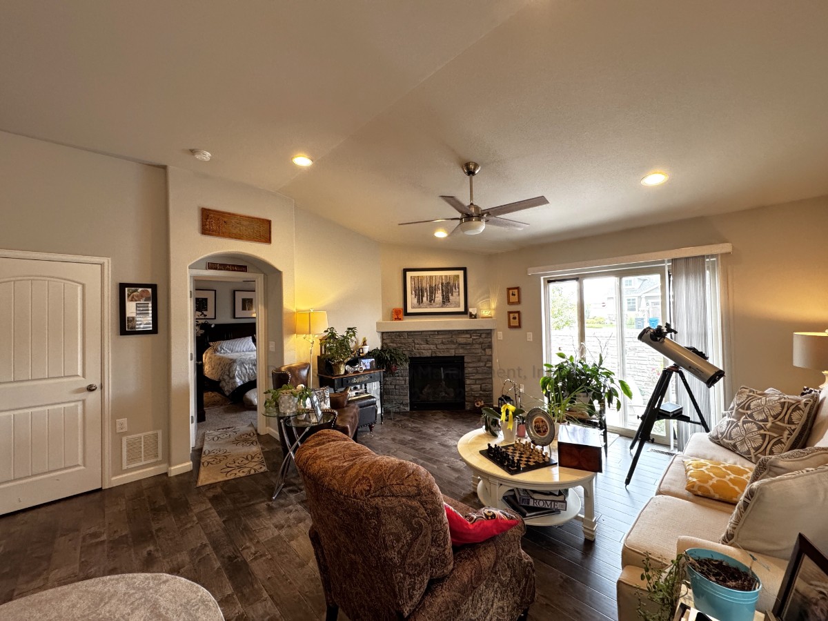 Welcome to this stunning 3-bedroom, 2.5-bathroom home that offers comfort, functionality, and style. As you enter, you’re greeted by an open concept layout that effortlessly connects the living room, dining area, and kitchen, perfect for both everyday living and entertaining. The living room features a cozy gas fireplace, ideal for those chilly winter nights. The kitchen is beautifully designed with rich dark cabinetry, sleek stainless steel appliances, and ample counter space for all your cooking needs. Just off the living room sits the primary suite, a peaceful retreat complete with a spacious walk-in closet and a private en suite bathroom featuring a double vanity and a walk-in shower. From the dining area, head down the hall to find a versatile bonus room that can be used as a home office, guest room, or hobby space. A convenient half bath and laundry area complete the main level. Downstairs, discover a spacious family room perfect for movie nights or gatherings, along with two generously sized bedrooms and a full bathroom. You’ll also find a large unfinished room that can serve as storage or a home gym area. Step outside from the living room to a private patio, perfect for grilling, relaxing, or soaking up the Colorado sunshine. The house is complete with a 2 car garage and central air conditioning for added comfort. With easy access to the freeway, new shopping centers packed with restaurants and shops, and main level living this stunning 3 bedroom 2.5 bathroom house is ready to be called home.