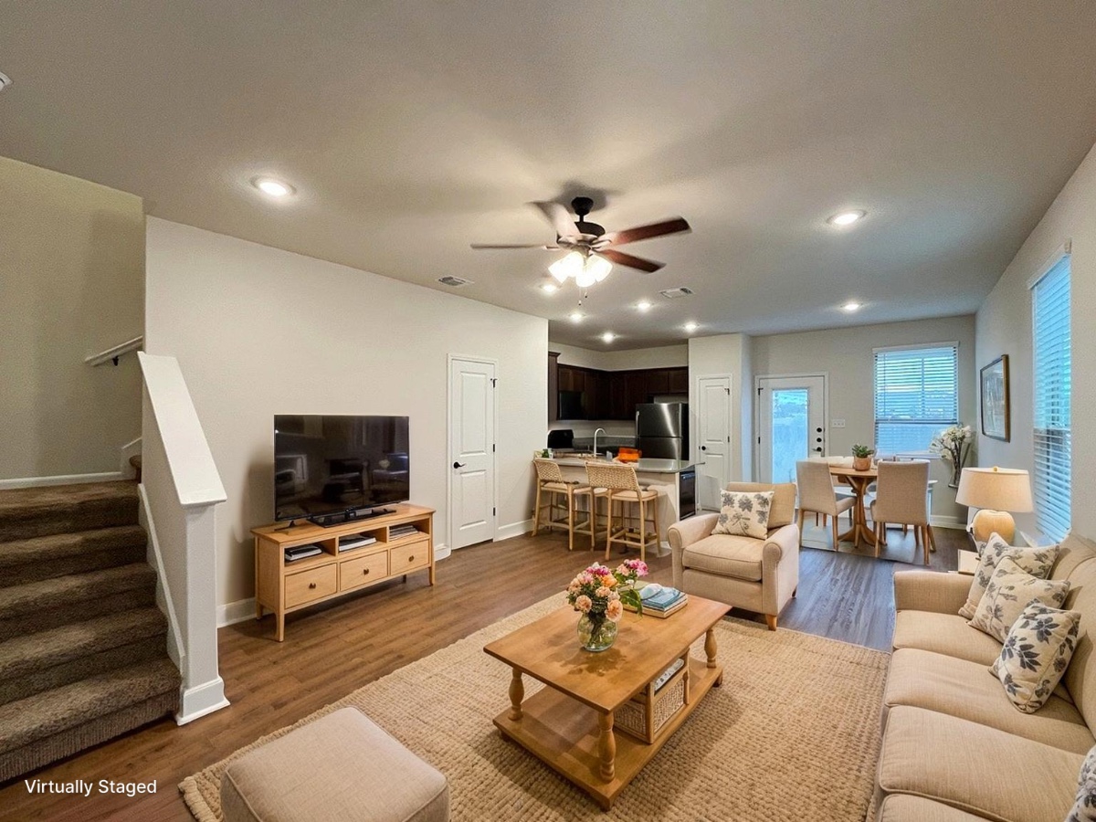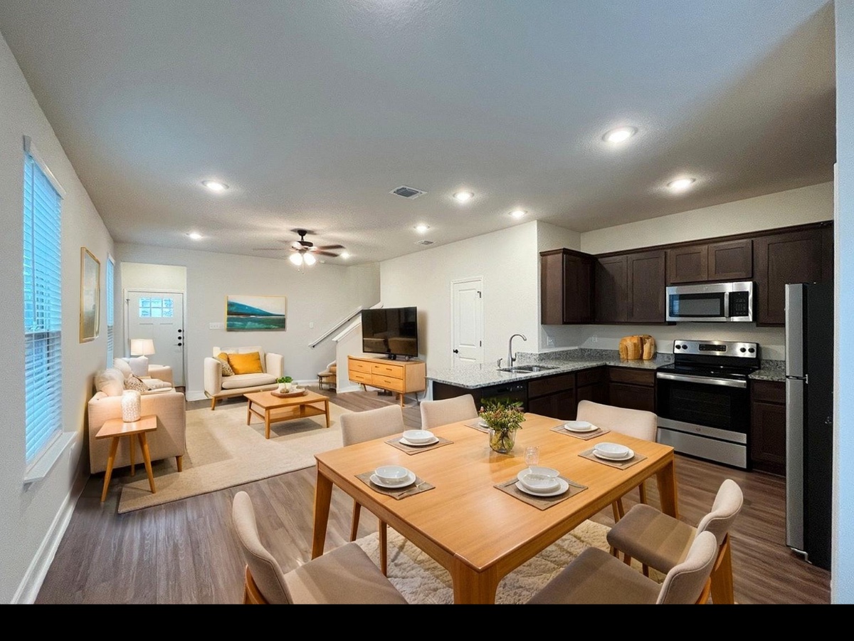 Welcome to this well-appointed 3-bedroom, 2.5-bath home located in a gated community with convenient access to shopping and local amenities. Designed with comfort and functionality in mind, the home features an open floor plan with a spacious living room, carpet and vinyl flooring, and all bedrooms situated upstairs. High ceilings on the second floor create a bright, open feel throughout the space.