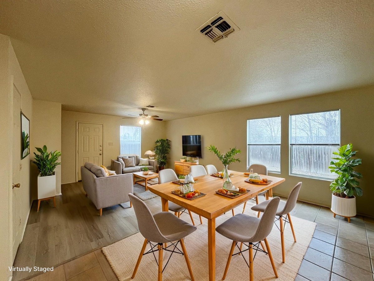 Step inside to an open floor plan with high ceilings and a spacious living/dining combo perfect for relaxing or entertaining. Durable ceramic tile and vinyl flooring run throughout the main level, while large, energy-efficient windows bring in plenty of natural light.