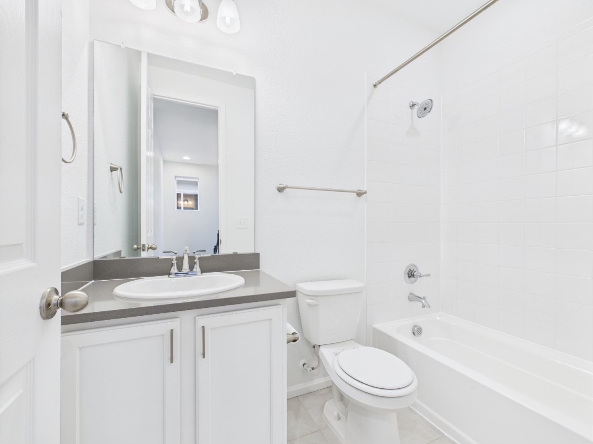 Upstairs, you’ll find plush carpet with upgraded padding, a master bath retreat with an oversized shower, glass door, and tall vanity, as well as a guest bathroom with a taller vanity. Additional thoughtful upgrades include privacy window tinting for energy efficiency, Cat 6 Ethernet in every room, kid-safe outlets, and a striking 3D accent wall in one of the bedrooms.
