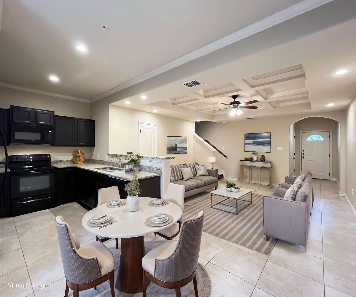 This beautifully updated 3-bedroom, 2.5-bath home offers a perfect blend of modern conveniences and comfortable living. The open floor plan creates a spacious and inviting atmosphere, ideal for both relaxing and entertaining. The living and dining area features high ceilings, abundant natural light, and easy access to the kitchen, making it a seamless hub for daily activities.