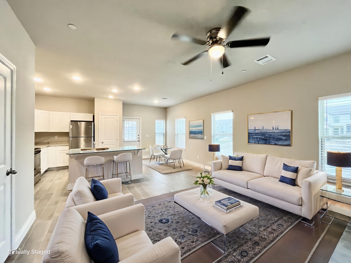 Welcome to this inviting 3-bedroom, 2.5-bath home designed for comfortable, modern living. The open floor plan features a bright living and dining room combination with a mix of plush carpet and durable ceramic tile flooring. All bedrooms are located upstairs, along with a convenient laundry closet offering washer and dryer hookups.