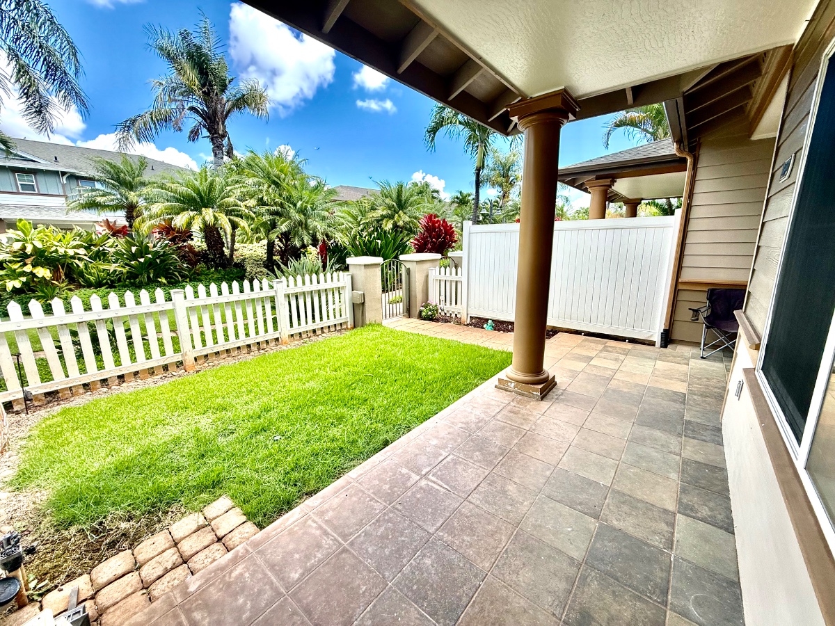 Welcome to this freshly painted 3-bedroom, 2.5-bathroom townhome in Fairway's Edge. Featuring low-maintenance ceramic tiles, while carpeting in the upstairs bedrooms. The modern kitchen is equipped with stainless steel appliances, ceiling fans, and central A/C, ensuring year-round comfort in the home. The spacious primary bedroom includes a dual vanity and a walk-in closet. Additional highlights include an in-unit washer and dryer, plus a newer water heater located in the garage. A fully fenced front yard—ideal for added privacy or enjoying the island breeze. Enjoy the community amenities, including a pool, relaxing whirlpool, barbecue areas, and covered pavilions—perfect for gatherings. Conveniently located near schools, just a short walk to Laulani Shopping Center. Explore the nearby Wai Kai Lagoon, participate in its vibrant weekly Farmer's market, and a few minutes' drive to Ka Makana Ali'i Mall. Move-In Ready? Renter's Insurance required. For Showings, text Merly at 808-381-6379