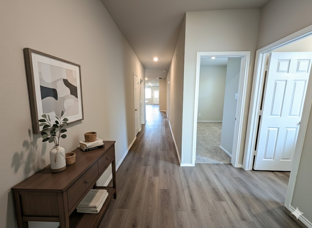 Welcome to your next home in Central Texas! This brand-new 4-bedroom, 2-bathroom duplex rental on a cul-de-sac has 1,479 square feet of thoughtfully designed, open-concept living space built for ease and comfort. The kitchen is the heart of the home, featuring granite countertops, handsome flat-panel birch cabinetry, a corner pantry, and a central island with a built-in sink. The primary bedroom is a true retreat, complete with dual vanity sinks and a generous walk-in closet, simplifying your daily routine. Outside, the large backyard has plenty of space for entertaining or just enjoying the evenings. This home backs to a green belt so NO BACK neighbors. For ultimate convenience, this home is equipped with built-in smart home technology, allowing you to effortlessly control and secure your home via a smart panel, your phone, or your voice. Start your smooth, calm rental journey here—inquire today to learn how easy it is to make this wonderful property your new home!