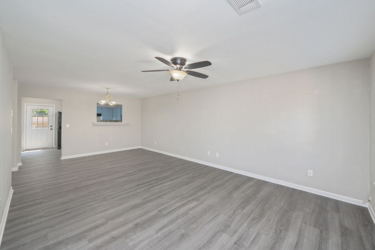 This spacious and modern 5-bedroom, 3-bathroom townhome in Crestview offers comfort, functionality, and style across two levels. Featuring durable luxury vinyl plank flooring throughout, this home is designed for low-maintenance living without sacrificing aesthetic appeal. The main floor includes a full bedroom and bathroom—perfect for guests or multigenerational living. The kitchen comes pre-appointed with sleek stainless steel appliances, ample cabinetry, and a contemporary feel. Ceiling fans are installed throughout, and the front storm door adds security and energy efficiency. Upstairs, you’ll find four additional bedrooms, two full bathrooms with glass-enclosed shower-tub combos, and a convenient laundry area with hookups. Step outside to enjoy a fully fenced-in backyard complete with a large wood deck—ideal for entertaining or relaxing in privacy.