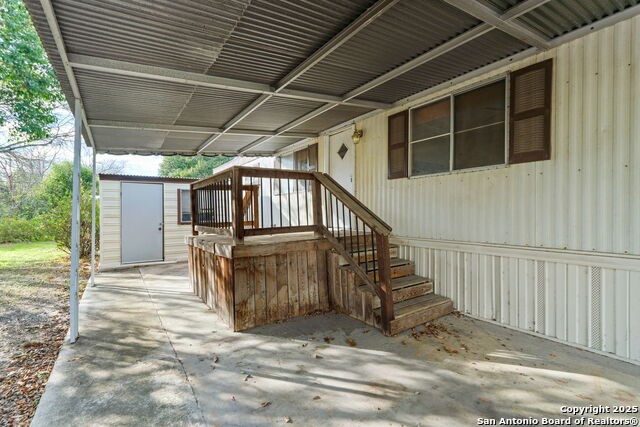Charming and cozy, this 2-bedroom, 1-bath manufactured home offers a warm and inviting atmosphere with beautiful wood paneling throughout. Home has been recently renovated with new flooring and full interior paint. The open floor plan connects the eat-in kitchen-complete with a smooth cooktop range, breakfast bar, and ample storage-to the comfortable living room, perfect for relaxing or entertaining. Both bedrooms feature built-in shelving and drawers, maximizing storage and functionality, while the bathroom boasts a convenient stand-up shower. Step outside to enjoy the covered patio at the carport, ideal for outdoor gatherings or quiet mornings, and take advantage of two additional storage buildings. Conveniently located near I-35, this home puts you close to everything New Braunfels has to offer.