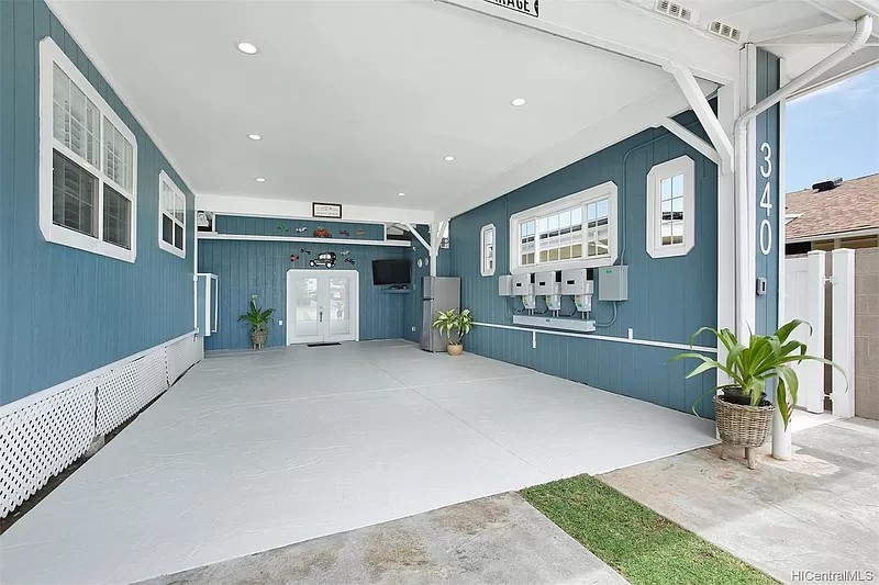 Classic Hawaiian style lanai, koa hardwood flooring throughout, plantation shutters, vinyl windows, split ACs, living/dining areas and kitchen. HUGE 3-bay storage area.