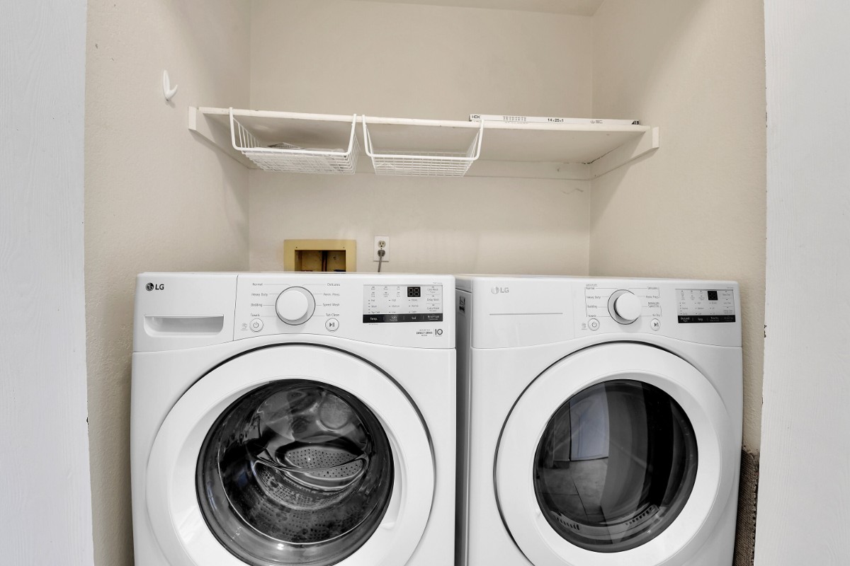 This 2-bedroom, 2.5-bathroom end-unit condo offers an open and functional layout with great features throughout. The living room has plenty of natural light from the front window and a wood-burning fireplace. The kitchen includes all major appliances, with the dining space nearby and a laundry closet with an in-unit washer and dryer. A small outdoor patio is located just off the kitchen. Both bedrooms have vaulted ceilings, large windows, and their own private bathrooms. Additional features include central A/C and one assigned parking space.