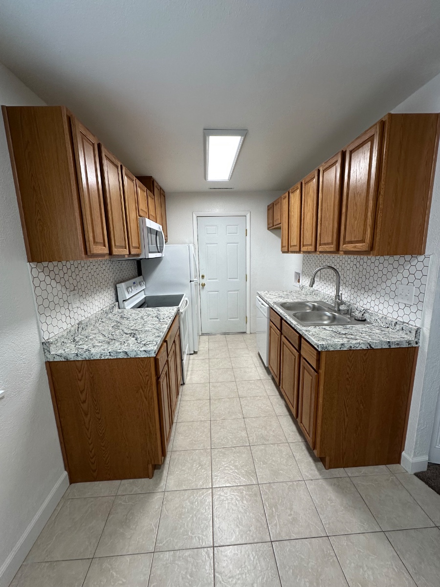 Newly remodeled kitchen, new ceiling fans in 2 bedrooms, new light in 3rd bedroom, washer/dryer combo, air conditioning, 1 car garage, near Fort Carson