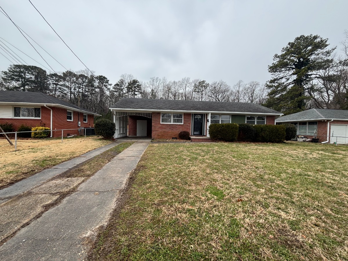 Inside, this charming single-level home offers approximately 1,000 square feet of thoughtfully arranged living space. Upon entering through the front door, you are welcomed by traditional hardwood flooring that extends throughout the home, creating warmth and continuity. The living room is filled with natural light and flows seamlessly into a cozy dining area positioned just off the galley-style kitchen. The kitchen comes fully equipped with a stove, refrigerator, and dishwasher, providing added convenience for daily living, along with efficient cabinet and counter space consistent with the home’s practical layout. The washer is conveniently located within the kitchen area, while the dryer is housed in the storage room off the carport. Three comfortably sized bedrooms are situated along a central hallway, with a full bathroom serving all rooms. The single-level ranch design provides ease of movement and an efficient floor plan with no stairs.