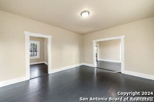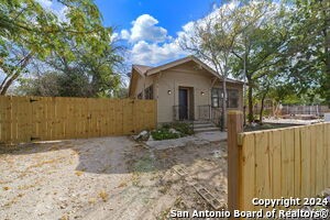 Nestled in the established Culebra subdivision, this charming one-story home has been thoughtfully renovated with an inviting open floor plan and wood flooring throughout. The formal dining room sets the stage for special occasions, while the kitchen provides ample cabinet space, a gas stove, and an incoming refrigerator. The spacious master bedroom, bathed in natural sunlight from generous windows, offers a peaceful retreat. The bathroom features a convenient tub/shower combo and a single vanity. Step outside to enjoy the oversized backyard with a patio slab, mature trees, and a privacy fence, perfect for relaxing or entertaining. Conveniently located near major highways, downtown, the Pearl, St. Mary's University, Santa Rosa Hospital, and UTSA Downtown. Pets are considered on a case-by-case basis.