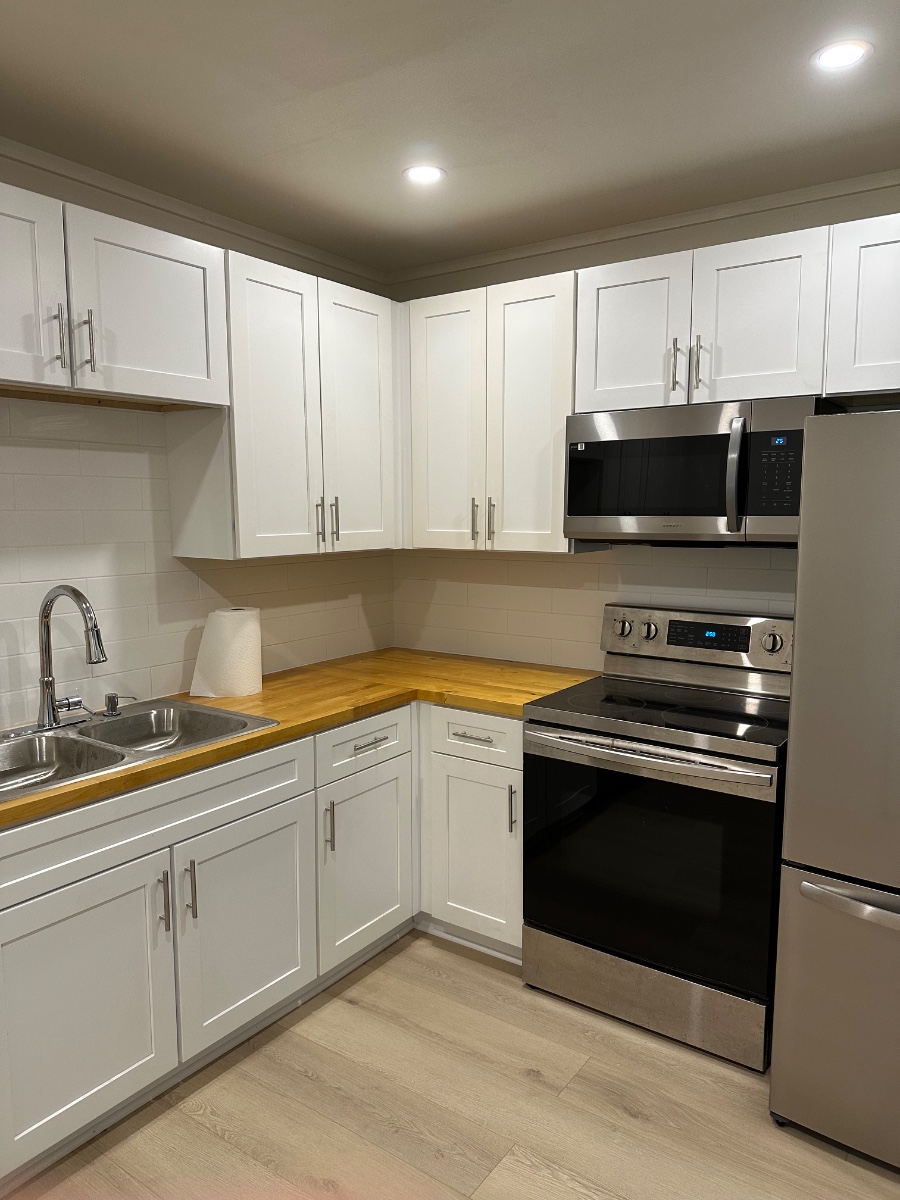 This house features new floors, windows, kitchen and bath. Kitchen includes a new refrigerator, microwave and range.