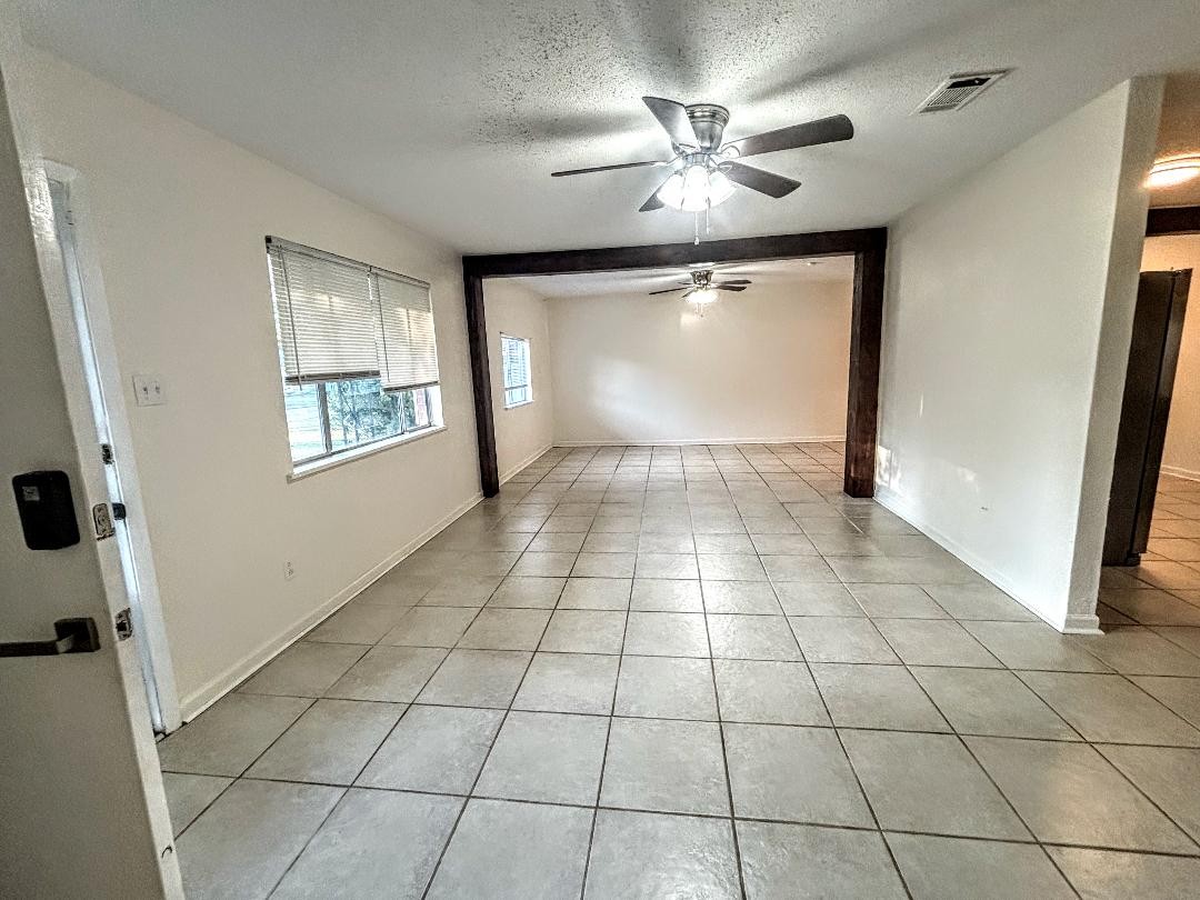 Dis here house got more room than Maw-Mawâs gumbo pot on a Sunday! The livinâ areaâs nice and roomy, and itâs got TWO ceiling fans to keep ya cool when dat Louisiana heat starts actinâ up. The updated beams give it a lilâ pop, like fireworks over da bayou, and the cool colors through da house make it feel modern but still cozy â like a hug from your favorite auntie who smells like pralines.